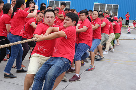 活動(dòng)現(xiàn)場,沒有參加比賽的員工自發(fā)組成啦啦隊(duì),在旁邊齊聲吶喊,為己方隊(duì)員加油助陣。最終,氣勢強(qiáng)勁的“二車間&倉儲(chǔ)聯(lián)隊(duì)”獲得冠軍,“飛翔隊(duì)”獲得亞軍,辦公室“玩美隊(duì)”獲得季軍。