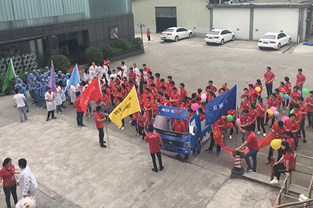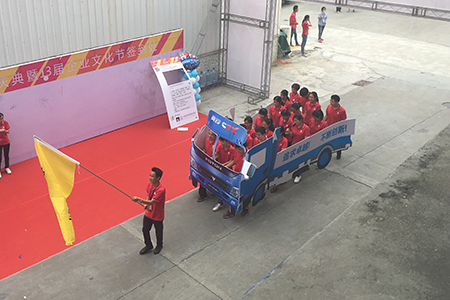 緊接著,一大幫來自“棟方二車間、倉儲(chǔ)聯(lián)隊(duì)”的老司機(jī)們,駕駛著“棟方奧鈴號運(yùn)輸車”穩(wěn)穩(wěn)向前,喊出他們“追求卓越,不斷創(chuàng)新”的決心。