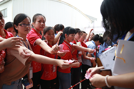 隨后,“棟方一車間隊(duì)”入場。他們高舉棟方股份“835056”的股票代碼和股票漲勢圖,預(yù)祝“棟方股票,漲漲漲;眾望所歸,上主板”。