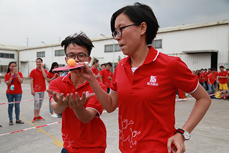 第二輪:協(xié)作接力賽,分鏈接加速、袋鼠跳、平衡乒乓球過障礙和無敵風(fēng)火輪4個(gè)接力小環(huán)節(jié)。一聲令下,參賽員工魚貫而出。場上,你追我趕、奮力拼搏;場下,加油聲、吶喊聲此起彼伏。這項(xiàng)活動(dòng)不只讓員工們的身心得到放松,還令他們的團(tuán)隊(duì)協(xié)作力、集體榮譽(yù)感得到前所未有的提高。