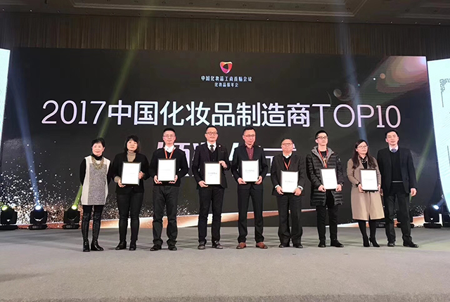 棟方股份榮登中國化妝品工商首腦會議暨化妝品報(bào)年會“2017中國化妝品制造商TOP10” 榜單