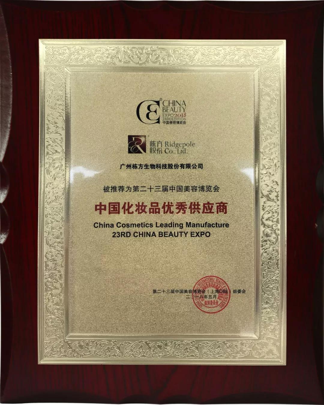 獲評“中國化妝品優(yōu)秀供應(yīng)商”