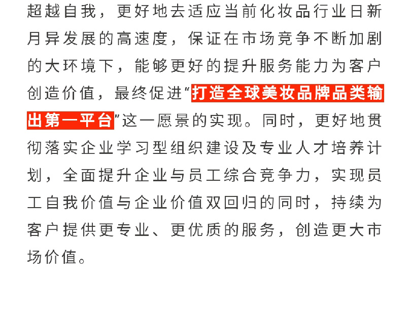 企業(yè)愿景: 打造全球美妝品牌品類(lèi)輸出第一服務(wù)平臺(tái)