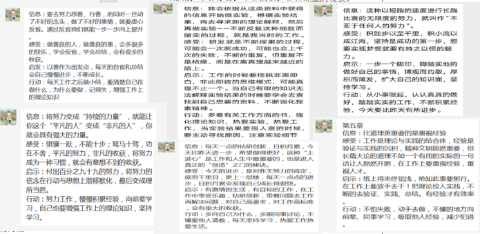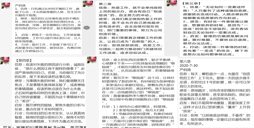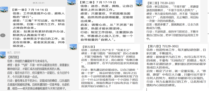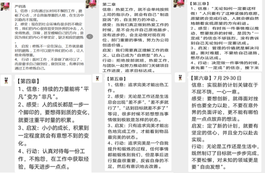 本次共讀,書友們?nèi)?00%參與打卡,以“閱、知、行”為核心導(dǎo)向,采用“信息+感受+啟發(fā)+行動”的方式總結(jié)自己的收獲和感悟,切切實(shí)實(shí)讓書友們做到學(xué)有所獲,學(xué)以致用。