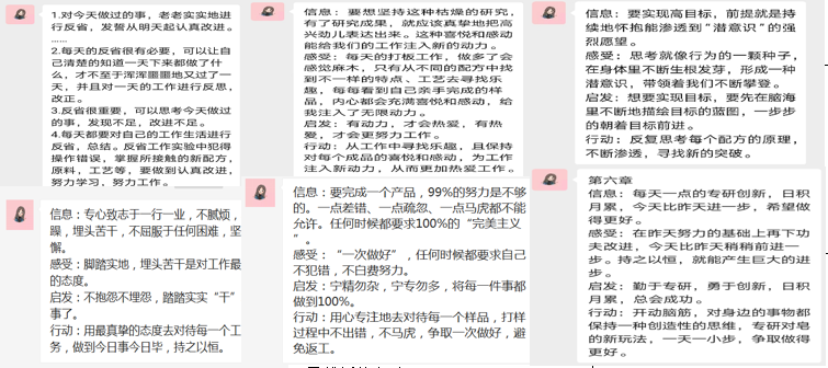 “書友分享共讀收獲&工作組感言”、“頒發(fā)‘優(yōu)秀共讀者’”、“思維導(dǎo)圖分享”三個互動板塊組成了精彩生動的結(jié)營儀式。本期意味深長的讀書會,留給書友們的是人生及工作上用之不竭的思考和收獲,“匠心”、“精進(jìn)”的種子已然種下,定會在工作上、生活上有所進(jìn)步。
