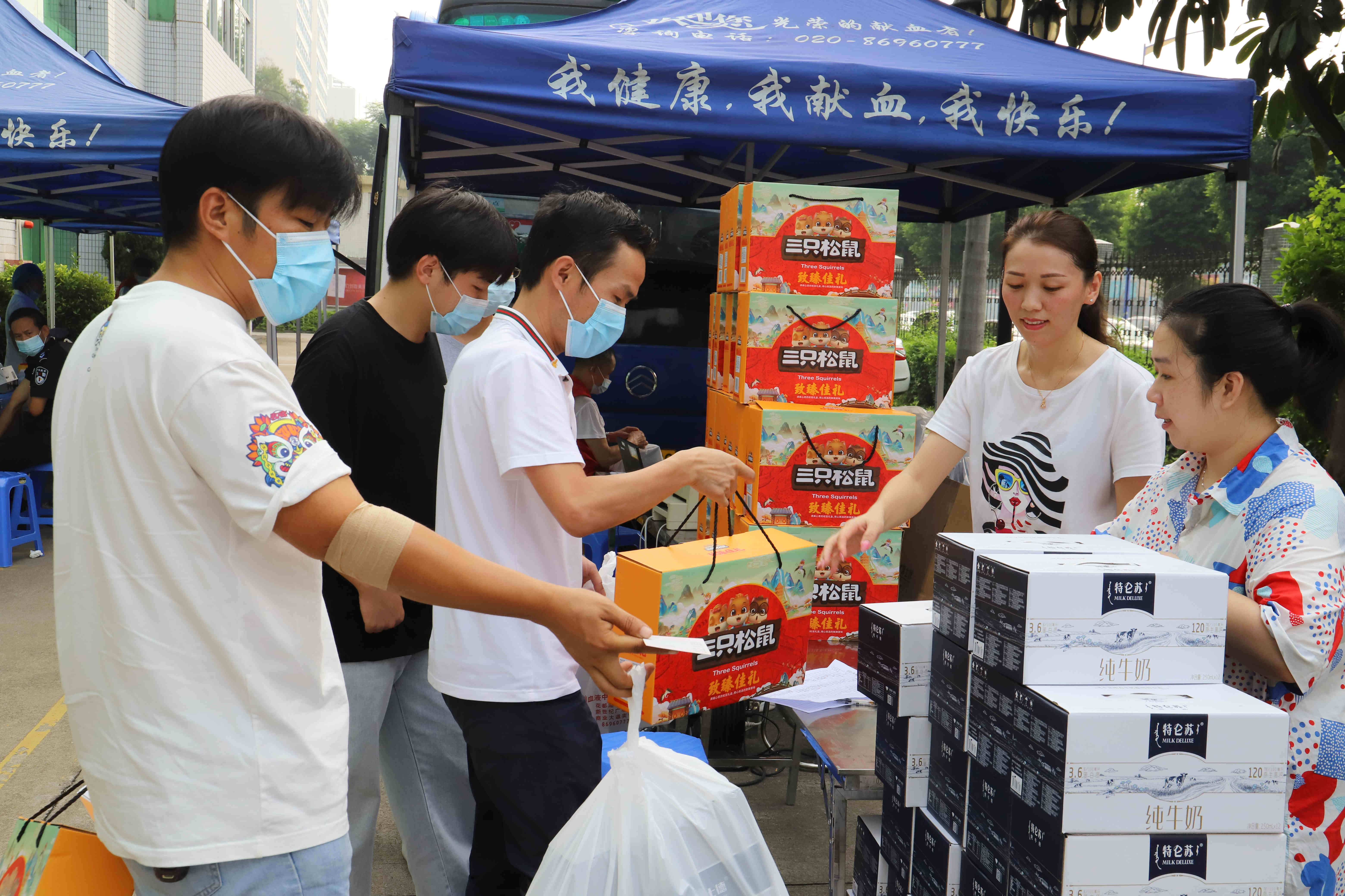 ▲工作人員為獻血者提供營養(yǎng)食品