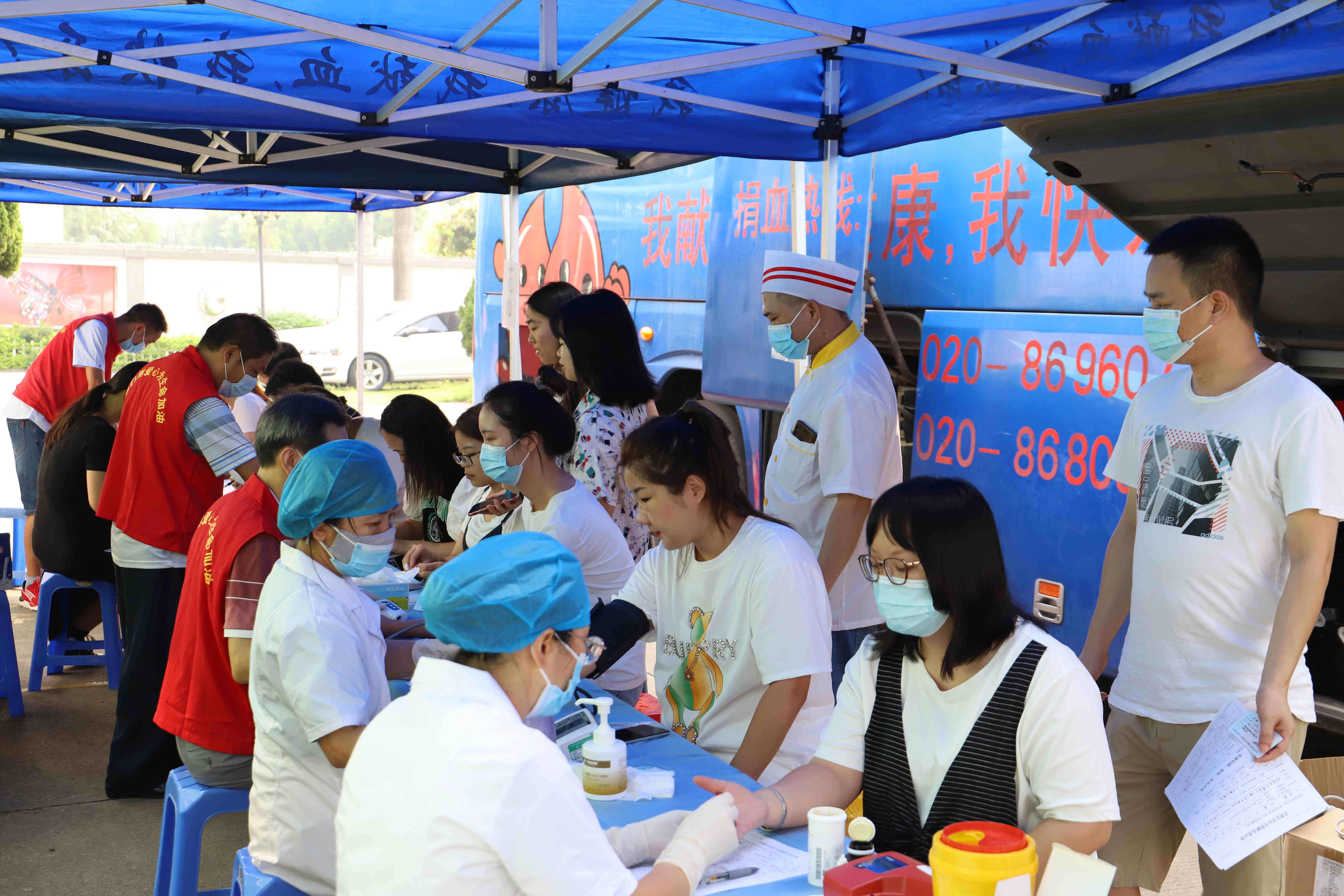 早上九點,獻血員工在采血點集合,在工作人員的指引下,有條不紊地進行身體檢查。通過篩選后,符合獻血標準的人員依次有序地踏上獻血車,紛紛起挽起衣袖獻出自己的一份愛心,