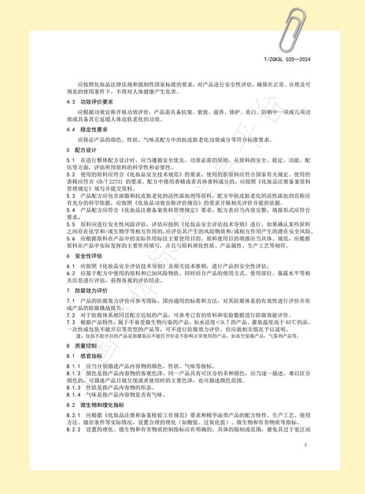 該標準從產(chǎn)品的定義、分類、技術(shù)要求、試驗方法、檢驗規(guī)則以及標志、包裝、運輸和貯存等方面進行了全面規(guī)定。其中,技術(shù)要求部分涵蓋了產(chǎn)品的配方設(shè)計、原料選擇、生產(chǎn)工藝、產(chǎn)品質(zhì)量等多個方面,確保產(chǎn)品具有明確的抗皮膚老化功效和安全性。